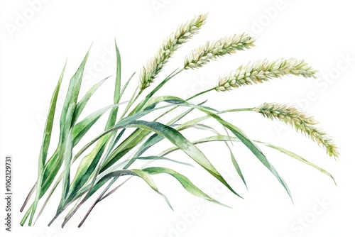 Watercolor painting of a millet plant, ideal for seed packaging or other agricultural designs