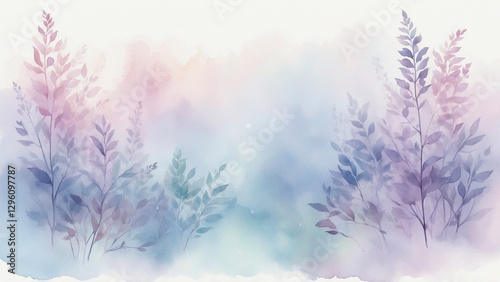 Watercolor painting of a soft botanical background with pastel leaves for decorative purposes.