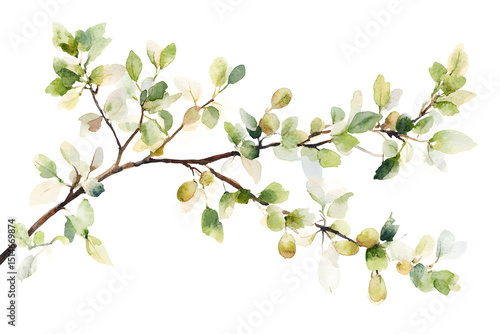 Watercolor painting of olive branches, isolated on white background.