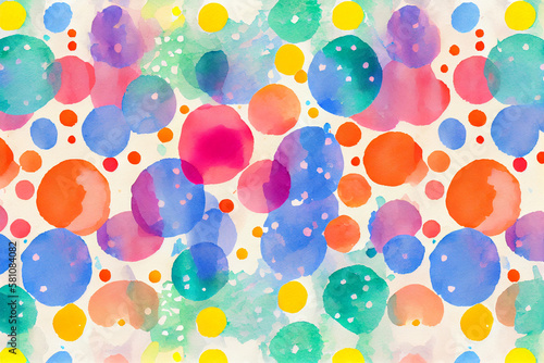 Watercolor pattern with overlapping colorful dots. Generative ai.