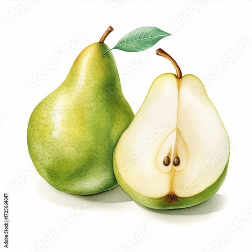 watercolor pear fruit slice, on white background