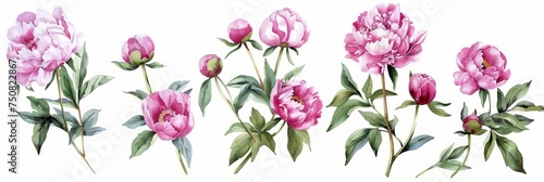 Watercolor Peony Illustration - Pink Peonies on White Background Generative AI