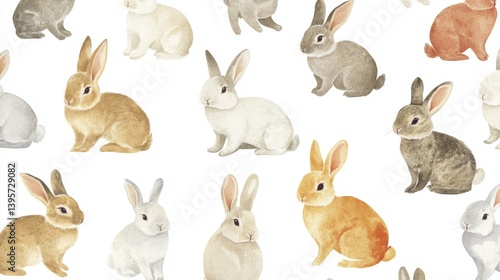 Watercolor Rabbits Seamless Pattern, Cute Bunnies Background for Textile and Decoration