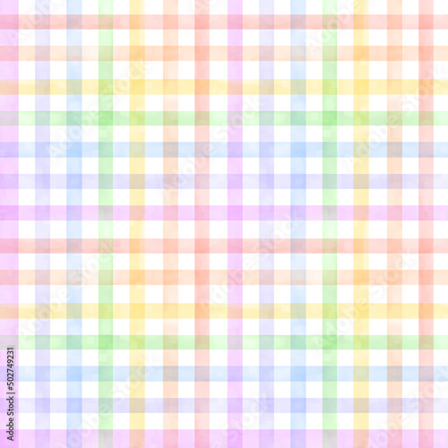 Watercolor rainbow striped pattern. Multicolor check pattern for kids. Pastel geometrical pattern for fabric, kids apparel, home decor
