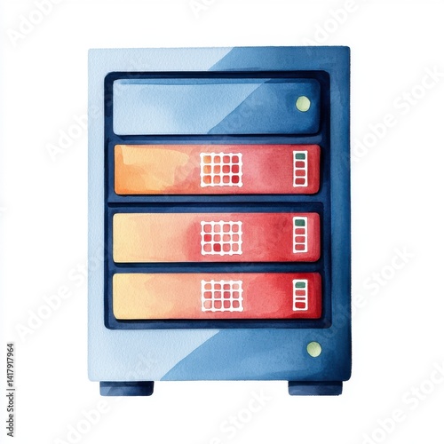 Watercolor Representation of a Locked Server with Storage Drives