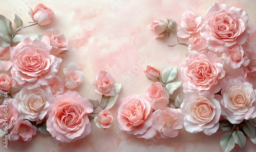 Watercolor roses in soft pink hues framing the text, romantic and elegant, 3D illustration