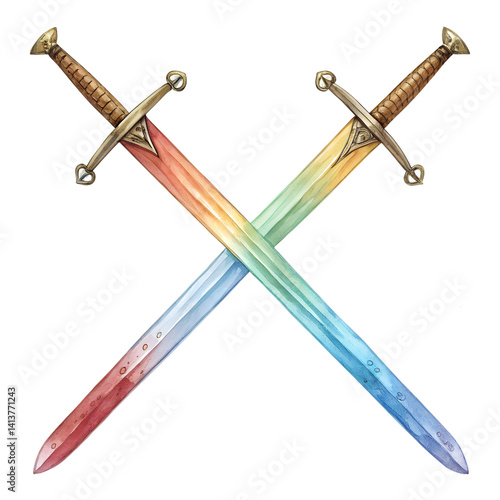 Watercolor rossed swords sabers flat illustration on isolated transparent background