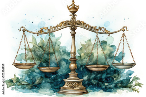 Watercolor Scales Of Justice Illustration, Generative Ai