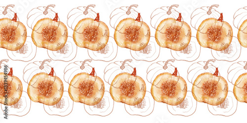 Watercolor seamless border with pumpkins and leaves