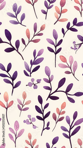 Watercolor seamless pattern featuring lavender and purple leaves, creating calming and elegant design