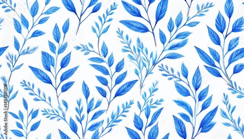 Watercolor Seamless Pattern Ornament with Blue Branches and Vibrant Blues on a White Backdrop An Exquisite Blend of Whimsy and Serenity Perfect for Digital Art, Home Decor, or Design Inspiration