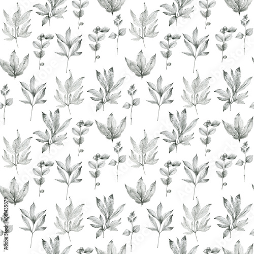 Watercolor seamless pattern with herbs. Pencil graphic.