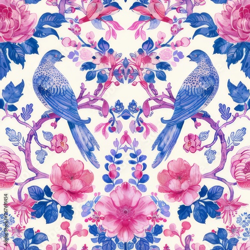 Watercolor Seamless pattern with pink and white