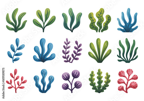 Watercolor Seaweed and Aquatic Plant Collection for Underwater Illustrations and Marine Biology Studies perfect for Children Books and Educational Materials
