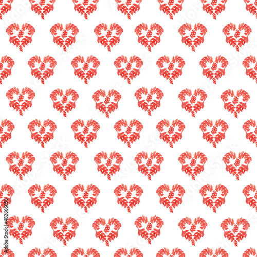 Watercolor set of seamless patterns with stylized red acanthus leaves
