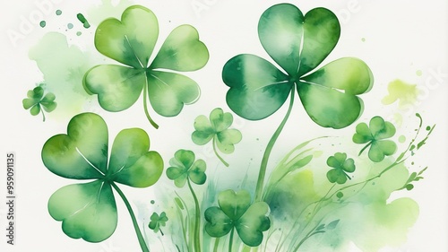 Watercolor Shamrock Painting On A White Background