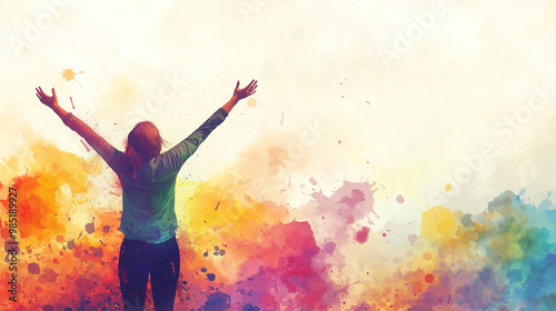 Watercolor silhouette, a person engaged in prayer embodies spiritual meditation and faith, reflecting their belief in God and the holy essence of religion amidst the beauty of nature.