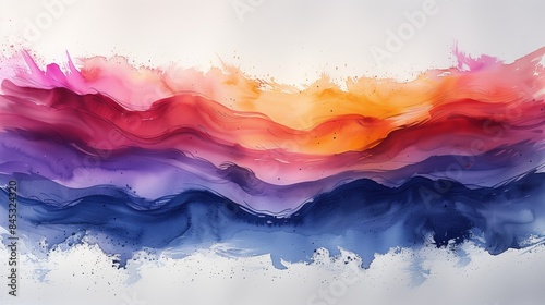 Watercolor splash of multicolor waves on white background. Artistic Color Explosion