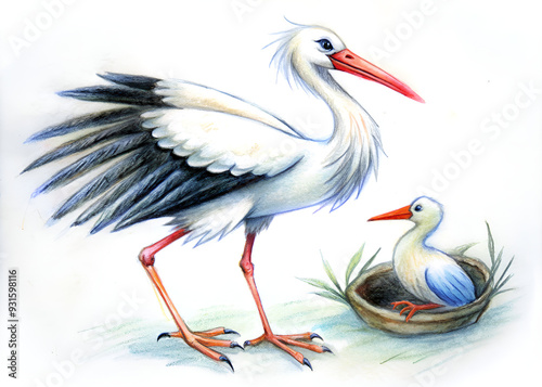 watercolor stork with bird