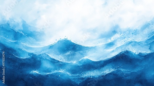 Watercolor stroke in various blue tones spreading across the background, creating a natural abstract oceanic scene