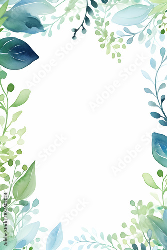 Watercolor template card invitation with blank copy space. Frame with green twigs and leaves.