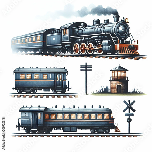 watercolor train logo isolated on white background