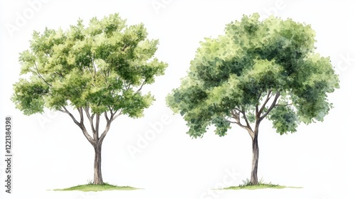 Watercolor Tree Side View Isolated on White Background for Landscape and Architecture Drawing