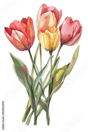 Watercolor Tulip Bouquet for Greeting Card with Spring-themed Frame