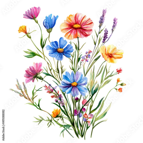 Watercolor Wildflowers Bunch Clipart — Hand-Painted Botanical Illustration on Transparent Background