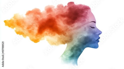 Watercolor Woman Silhouette with Colorful Hair