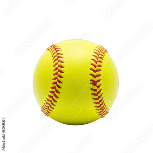 Watercolor Yellow softball with red stitching isolated on a transparent background