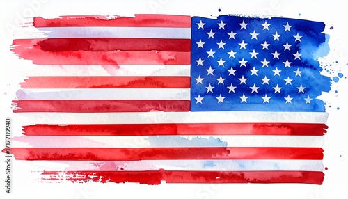 Watercolor-style American flag with expressive brush strokes and blended colors.