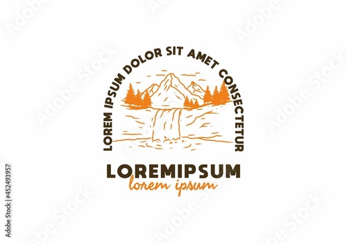 Waterfall line art drawing with lorem ipsum text