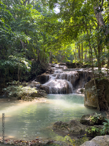 Waterfall on a river in the tropical forest of Thailand