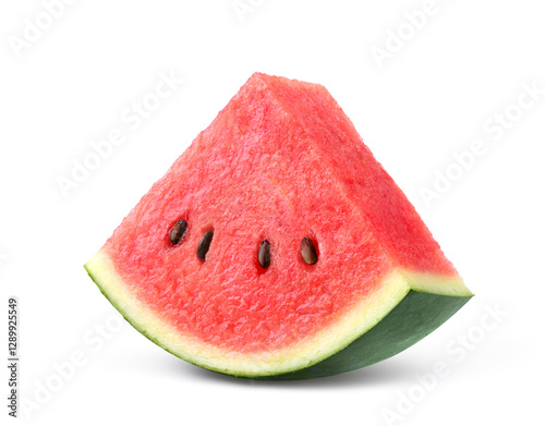 Watermelon slice with seeds isolated on white. Clipping path.