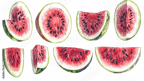 Watermelon Slices, Watercolor Painting of Juicy Summer Fruit