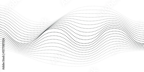 Wave abstract pattern. Flow of black curved dotted line vector illustration isolated on white background. Dynamic shiny swirl backdrop. Digital, technology, ai, music, modern design element.