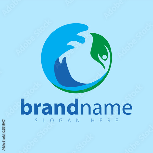 wave and leaf people logo icon vector template