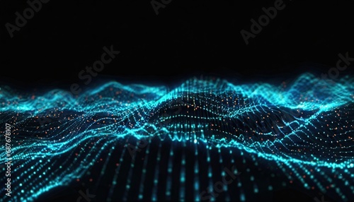 Wave of bright particles. Sound and music visualization. Abstract digital background