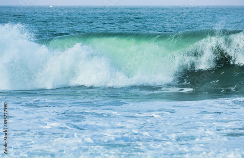 Wave splashing close-up. Crystal clear sea water, in the ocean in San Francisco Bay, blue water, pastel colors.