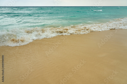 Waves and foam on a tropical sandy beach.