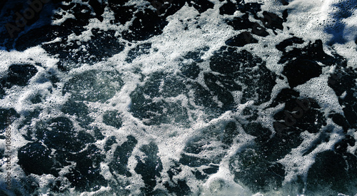 Waves and sea foam at the seashore. Natural background.