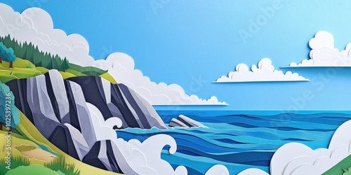 Waves crashing against rugged cliffs along a scenic coastal trail by the Atlantic Ocean, Waves crashing against cliffs on a coastal trail
