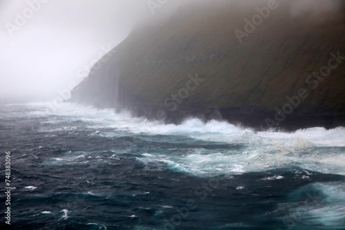 Waves crashing at the coastline of the Faroe islands