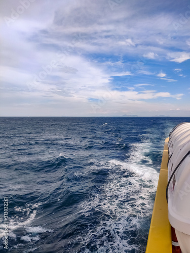 Waves from a ferry boat sailing awa from Phi Phi Islands in Thailand.