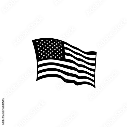 Waving American Flag Silhouette with Stars and Stripes in Black and White.