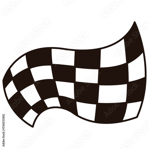 Waving Black And White Checkered Flag With Transparent Background And Dark Outline In A Sports Context