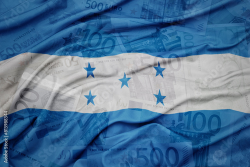 waving colorful national flag of honduras on a euro money banknotes background. finance concept.