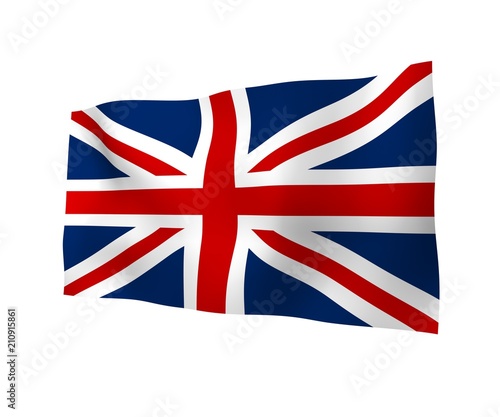 Waving flag of the Great Britain. British flag. United Kingdom of Great Britain and Northern Ireland. State symbol of the UK. 3D illustration