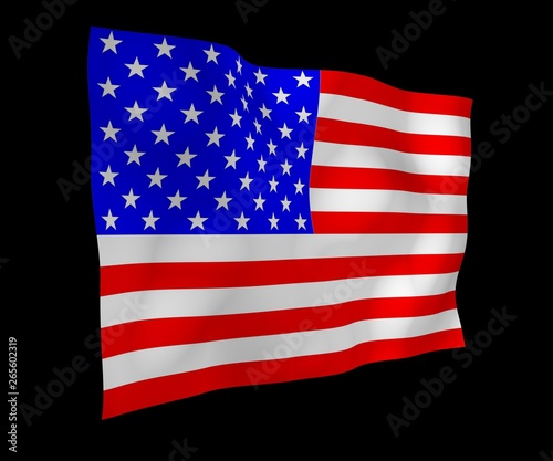Waving flag of the United States of America on a dark background. Stars and Stripes. State symbol of the USA. 3D illustration